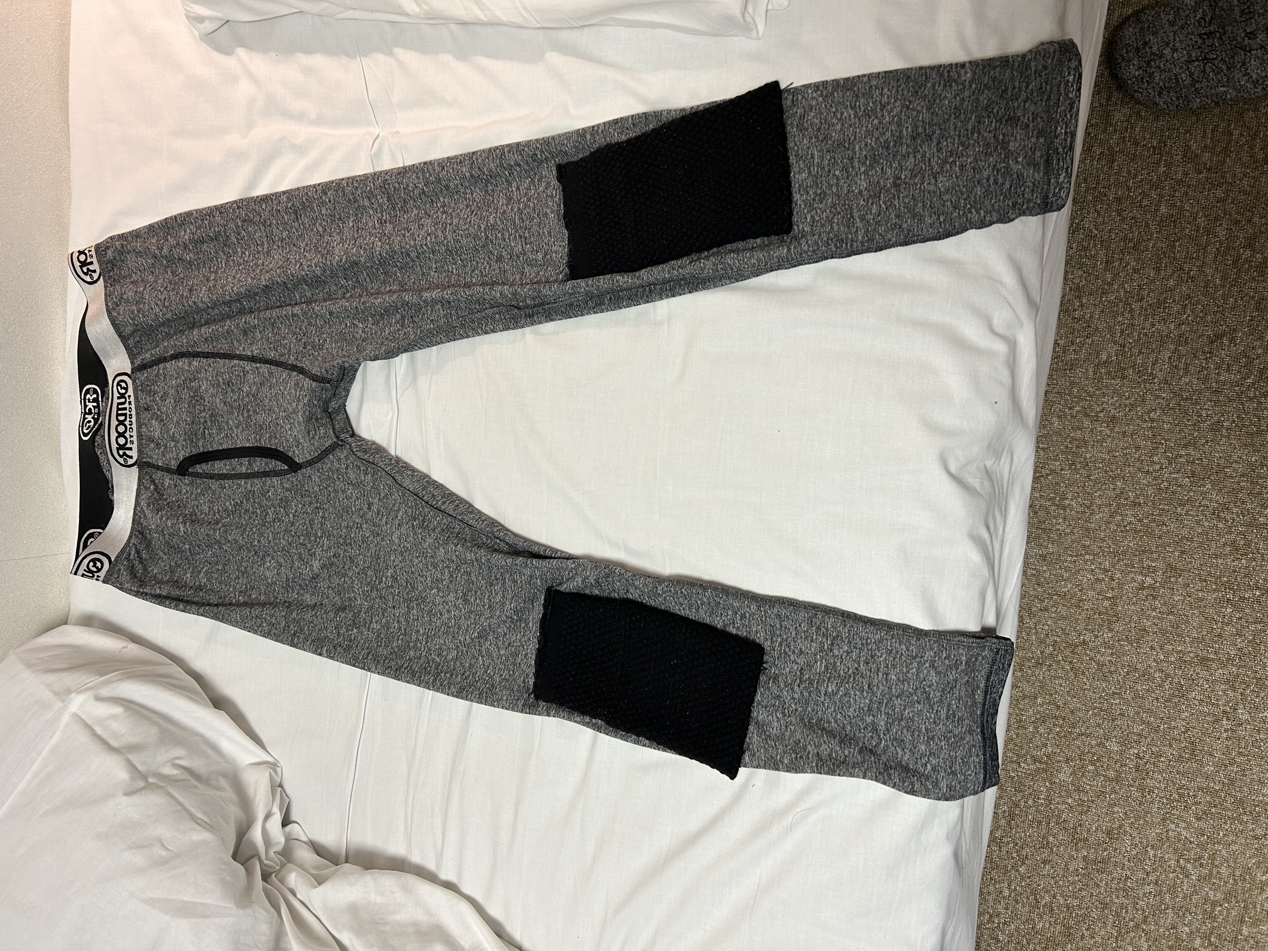 レッスンで膝をつくので雪が硬いときにしんどいので、ユニクロのタイツに膝パッドを縫い付けてみた。